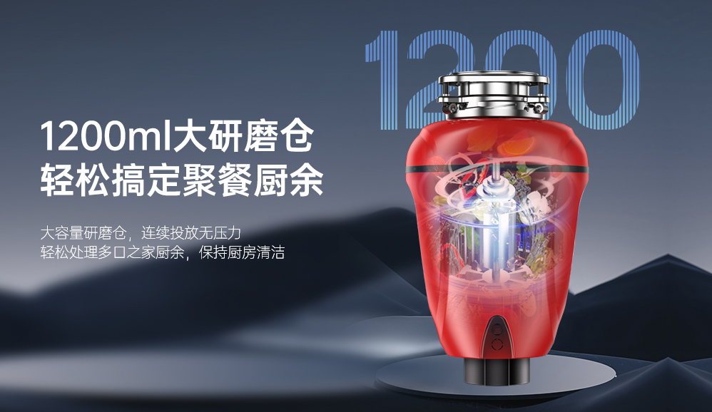 - 1200ml大研磨倉 輕松搞定聚餐廚余