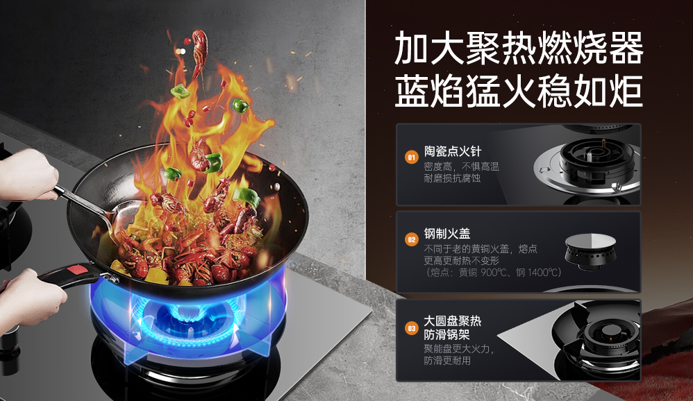 - 加大聚熱燃燒器 藍(lán)煙猛火穩(wěn)如炬
